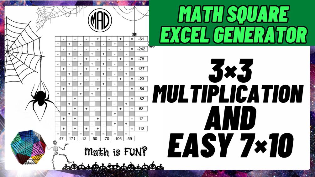 3x3 MULTIPLICATION MATH SQUARE SINGLE PUZZLE GENERATOR IN EXCEL - as seen on YT Channel