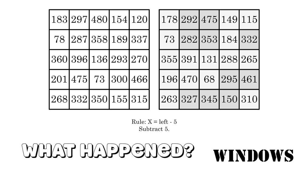- A right grid with results after a single mathematical rule is applied