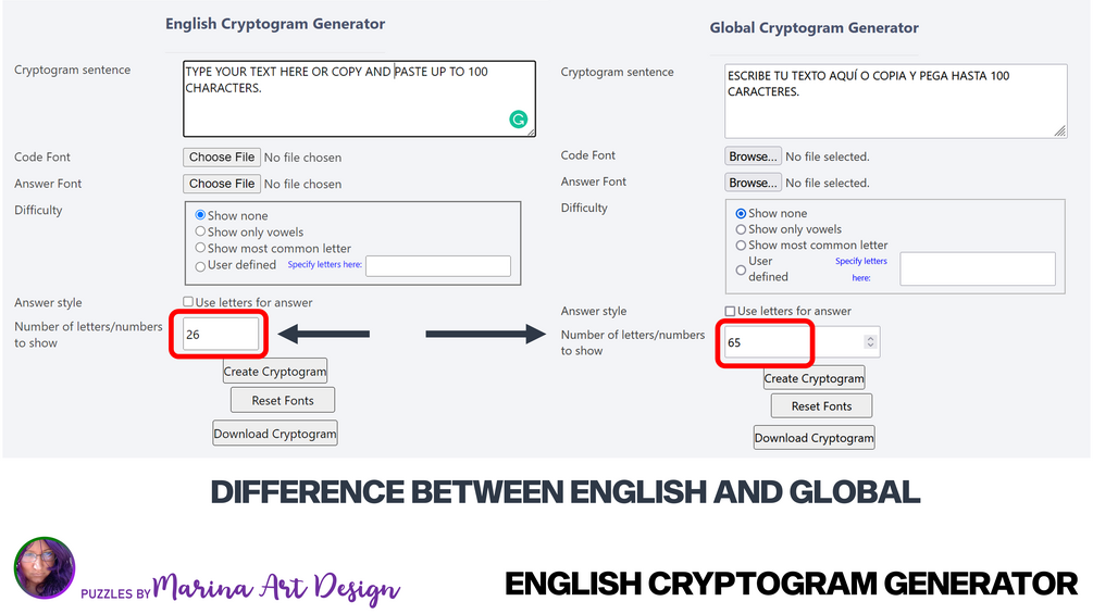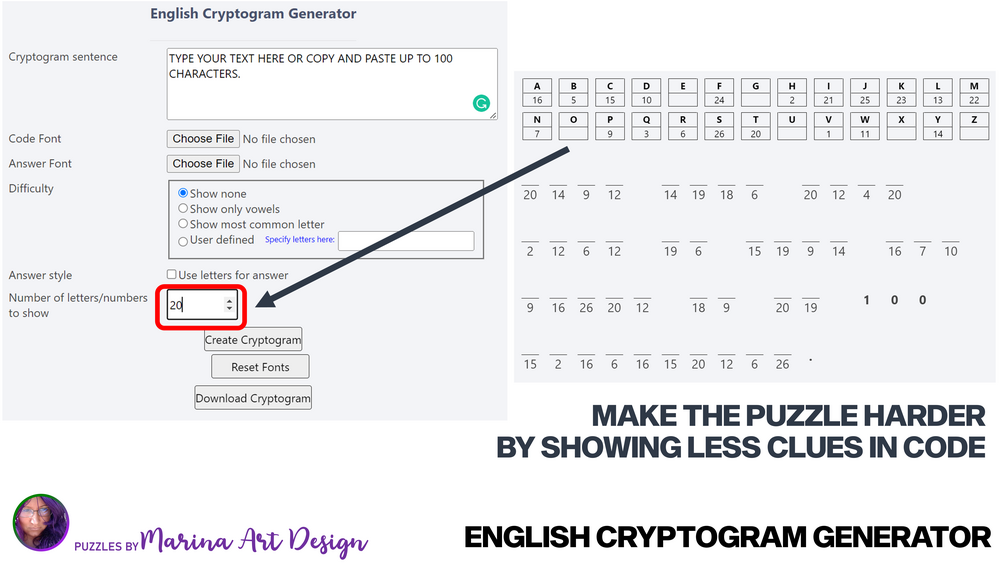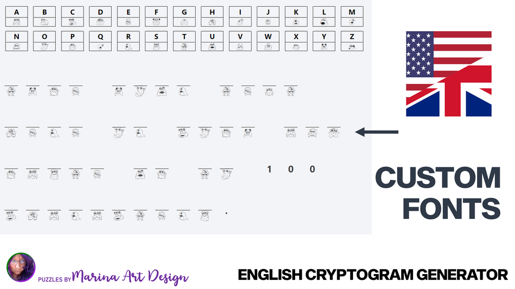 The main feature of the cryptogram is the ability to use your own fonts to create puzzles.