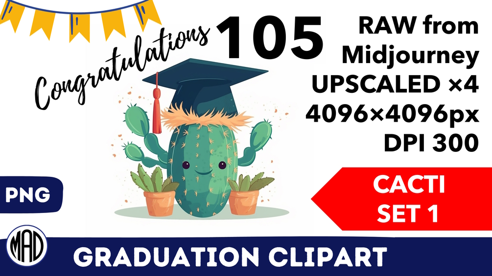 RAW MIDJOURNEY IMAGES GRADUATION CLIPART - CACTI SET 1